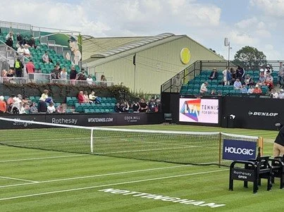 Following lunch, it was an opportunity to watch some of the high quality live tennis that the quarter-finals had to offer. Our own Bruna Gil had rushed to make sure she could see eventual winner and Brazilian compatriot Beatriz Haddad Maia take on top seed Maria Sakkari in an entertaining three-set contest. The networking didn’t stop here as we were able to speak to some of the Nottingham locals in the crowd who have attended the event in the past and discuss how much it meant to them to see things like the Progress and Pride Flags and the rainbow sweatbands dotted around the event. They highlighted how seeing such symbols for the first time at a tennis event meant so much to them and how they had already told their families and friends about them. Seeing the LTA’s video interview with player and LGBTQ+ ally Liam Broady played on the big screens on Centre Court was yet another highlight of the day, as it was great to watch one of Britain’s best actively being involved in the conversation and showing his support too.